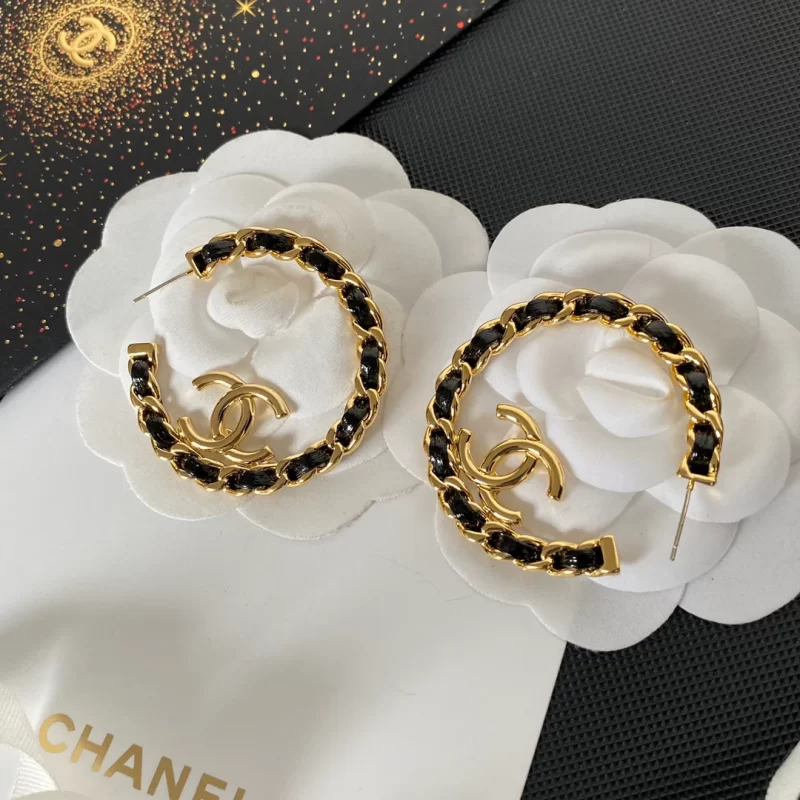 Be the first to review “Gold Studs Leather Hoop Earrings”